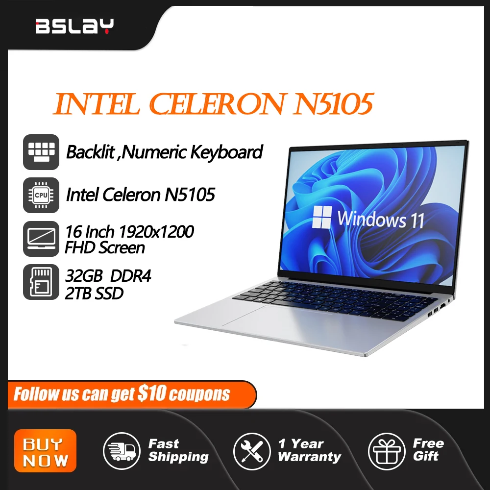 Intel Celeron N5105 2 GHz 4 cores 10th gen proc...
