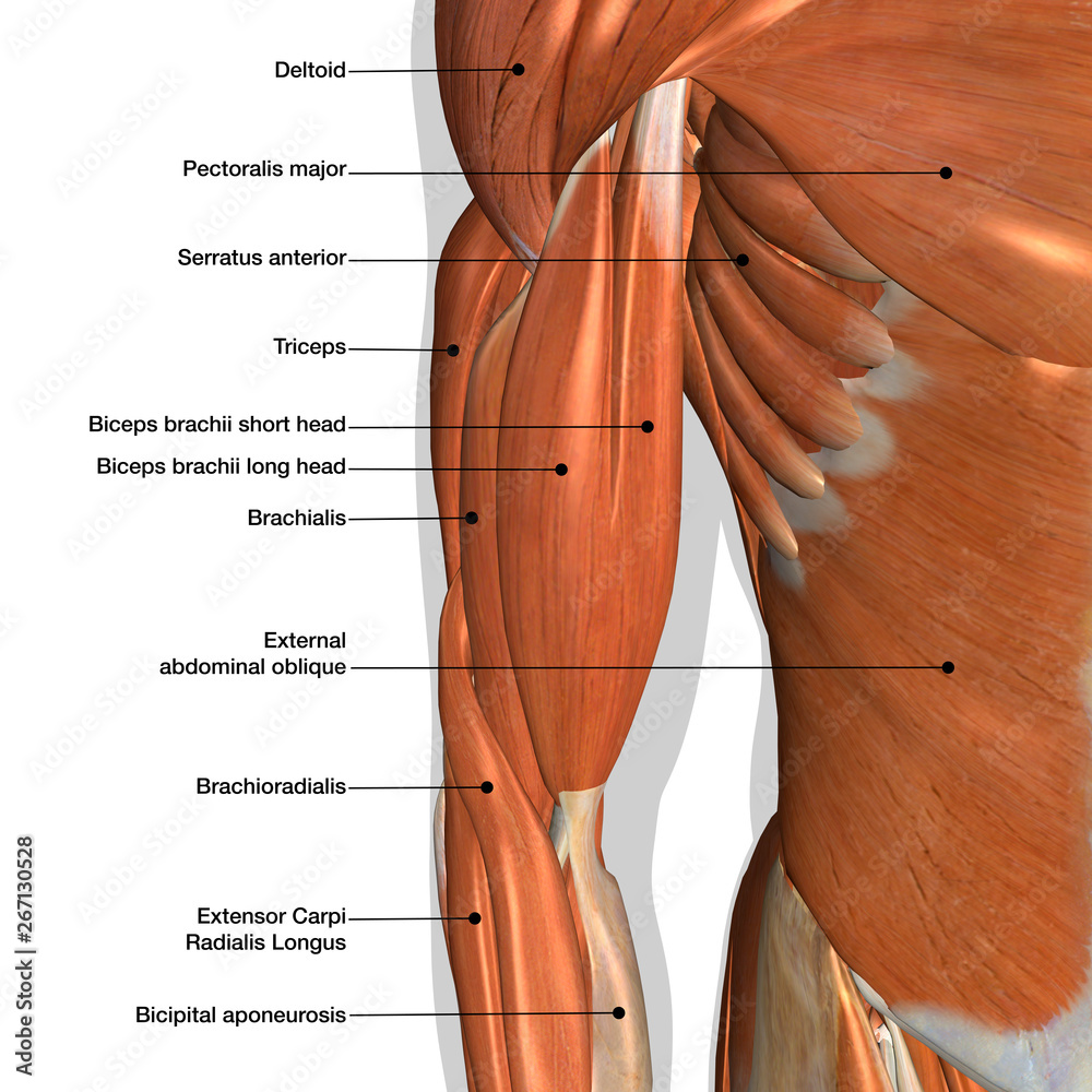 Male Biceps Muscle Chart Labeled on White Backg...
